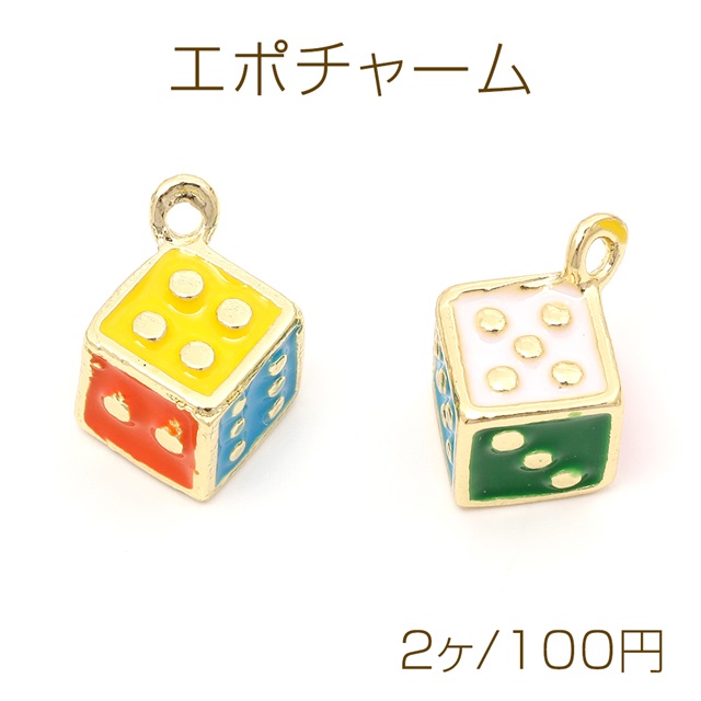 エポチャーム エポサイコロチャーム メタルキューブチャーム 立体サイコロチャーム 1カン付き ゴールド 10×14mm(2ヶ)