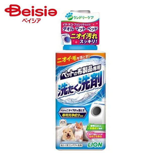 | 商品特徴 | ペットの布製品を洗うための洗たく用コンバクト洗剤。タオル、マット、毛布などのニオイから毛までスッキリ落とす。ペットのニオイ汚れを落とす専用洗浄成分配合。洗うたびに高まる離毛効果。すすぎ1回でOK。ドラム式洗濯機にもおすすめ。植物生まれの除菌成分配合。ペットに安心設計(皮ふ刺激性なし判定処方)。グリーンフローラルのマイルドな香り(微香性)。 |