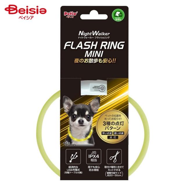 ペティオ ナイトウォーカー フラッシュリング ミニ イエロー ペット | 犬 猫 光る 首輪 LED ライト 夜間 散歩 安全 ペット ナイトウォーカー フラッシュリング イエロー
