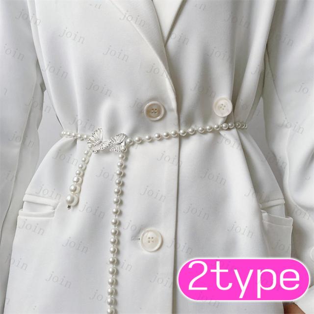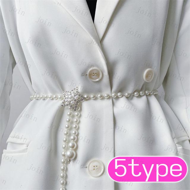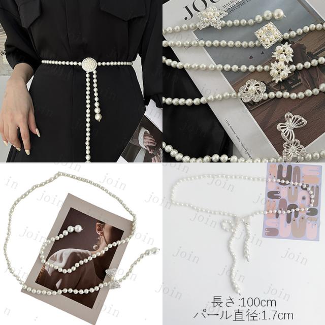 ベルト レディース (z93#) パールベルト ドレス エレガント 可愛い ゴムベルト 韓国 ウエストベルト 結婚式 チェーン 細ベルト