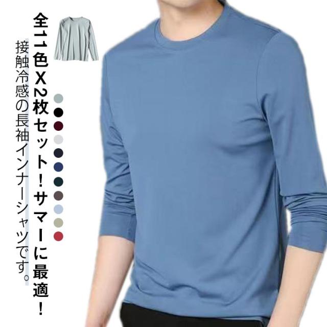 吸汗速乾 涼しい メンズ 長袖tシャツ 接触冷感 【2枚セット】 クールネック 夏 ロンT 夏用 大きいサイズ tシャツ トップス 薄手 ストレッチ ラッシュガード インナーシャツ トレーニングウェア ゴルフ スポーツ 通気性 作業服 アイスシルク