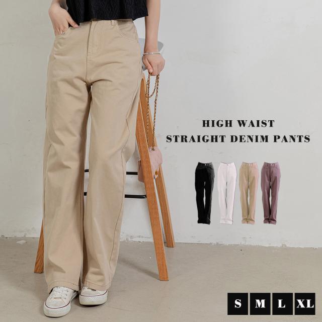 「すらっと美脚を叶える」 ストレート デニム パンツ レディース 美脚 女性 ハイウエスト ストレート 合わせやすい 脚見せ オールシーズン ボタン ファスナー タックインコーデ ベルトループ サイズ調整可能 フロントボタン 艶あり 艶なし ポケット付き