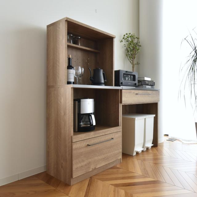 デザイン性と使いやすさを兼ね備え、ワンランク上のお洒落な空間を演出するレンジボードです。特殊鋼板を使用した天板と木目の組み合わせがスタイリッシュな印象です。