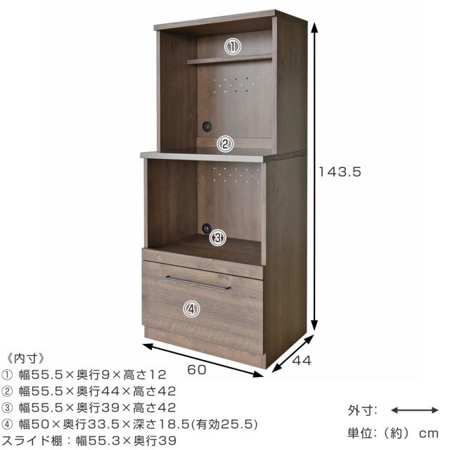 レンジボード 幅60cm ミドルタイプ 特殊鋼板 日本製 完成品 グラーデ ( レンジラック 食器棚 キッチン 収納 棚 ラック GLURDE レンジ台 家電収納 スライド棚 引き出し )