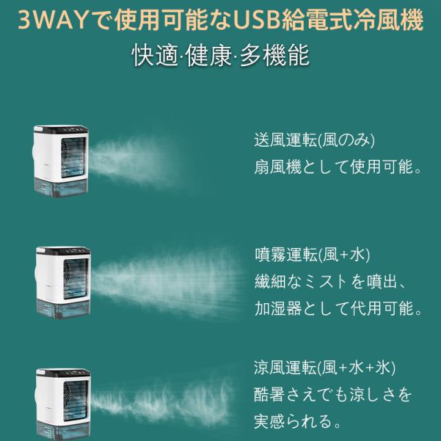 冷風機 冷風扇 扇風機 卓上冷風機 USB給電式 加湿機能 氷いれ可能 小型 携帯冷風機 強風 コンパクト 省エネ 3段階調整 熱