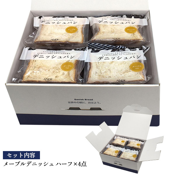 食パンギフト【ANDE】デニッシュ食パンギフト メープルハーフ 4袋セット お祝い 誕生日 ギフト 高級パン パンギフト 内祝 御祝 リッチ 食パン 化粧箱 贈答 贈り物 プレゼント 食卓パン お取り寄せ パン 休日 ご褒美 グルメ 朝食 全国配送 常温配送 人気 パン屋さん