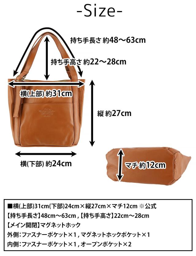 | サイズ(約) ※当店実寸値 | 公式サイズ 横(上部)31cm(下部)24cm×縦27cm×マチ12cm 【持ち手】48cm〜63cm 【持ち手の高さ】22cm〜28cm | ||
