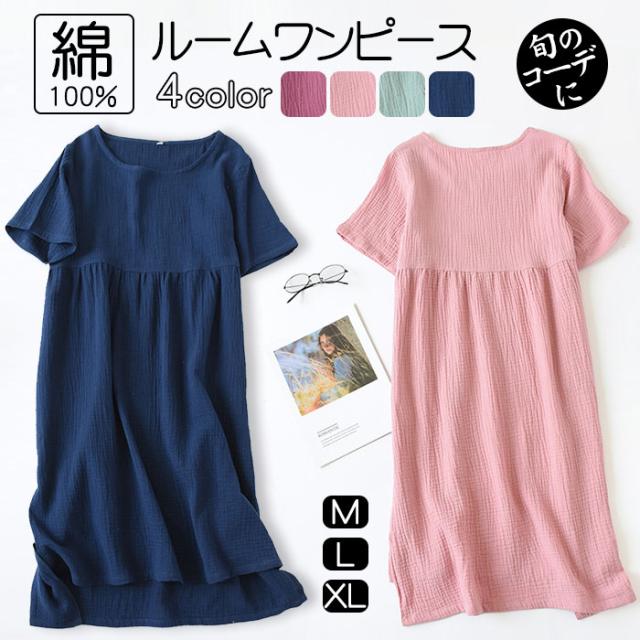 レディース ルームウェア 部屋着ワンピース 半袖 パジャマ 夏 綿 ガーゼ ゆかた 入院 介護用 旅館 女性用 通気性良く 部屋着 柔らかい プレゼント