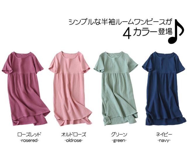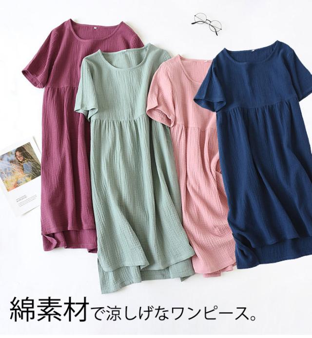 レディース ルームウェア 部屋着ワンピース 半袖 パジャマ 夏 綿 ガーゼ ゆかた 入院 介護用 旅館 女性用 通気性良く 部屋着 柔らかい プレゼント