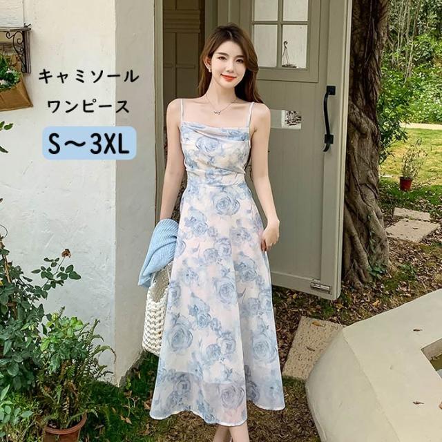 キャミワンピ 大人 夏ワンピース セクシー レディース キャミソール ワンピース サマー 無地 袖なし オシャレ ロング丈 ロングワンピ 春 夏 オフコーデ パーティー ハワイ ハワイアン 結婚式 海外旅行 新婚旅行 ビーチ ブルー