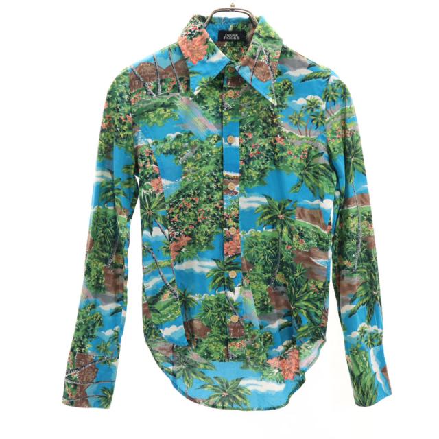 オゾンロックス 日本製 パームツリー柄 長袖 アロハシャツ 水色 OZONE ROCKS レディース