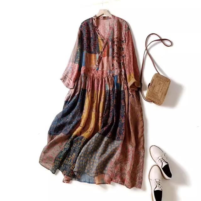 夏ワンピース 花柄 総柄 シャツワンピース ロング丈 ゆったり フラワー Vネックワンピース リラックスしたコーデに おすすめ 女の子っぽく華奢見せ