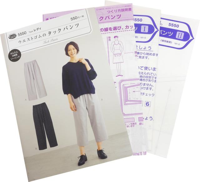 型紙・パターン フィットパターンサン ウェストゴムのタックパンツ 5550