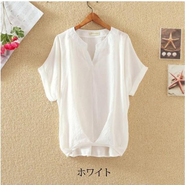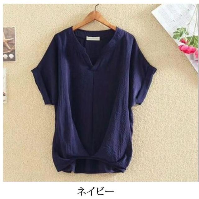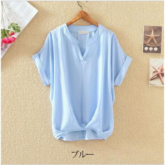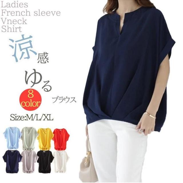 ブラウス 半袖 レディース シャツ トップス オフィス 事務服 ゆったり きれいめ 夏 春 Vネック 20代 30代 40代 50代