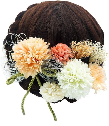 ??【ギフト用の箱付き】アーティフィシャルフラワー(造花)のダリアとマムとパールシャワー、アジサイピック、タッセルの髪飾り9点セット、コーディネートを楽しんでいただけます。 アレンジしやすい成人式 髪飾り かすみ草 幅広い年齢の方に愛用頂けます。