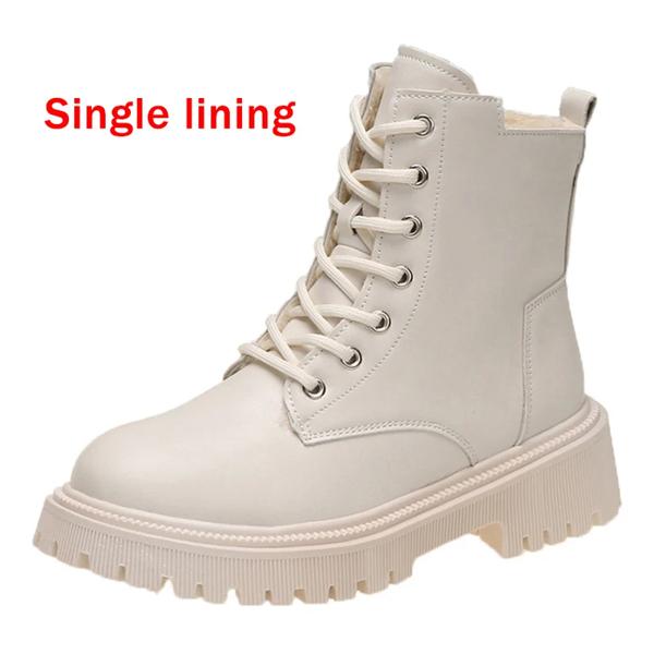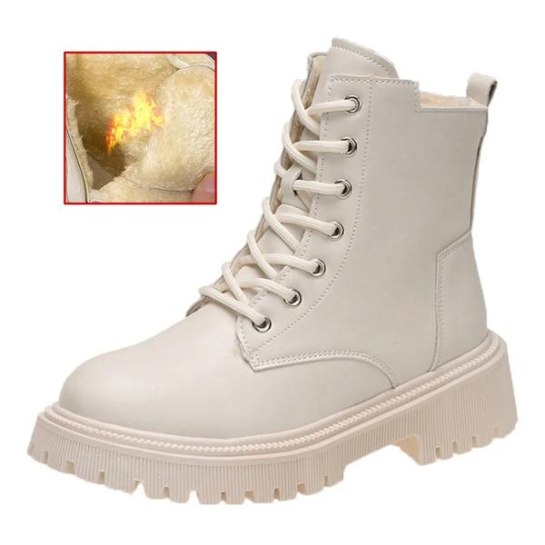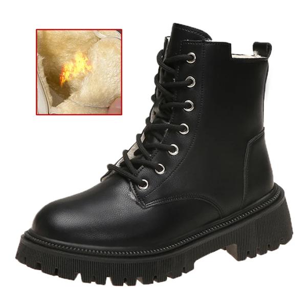 Chunkyヒールレースアップ戦闘ブーツ 女性用 ショートぬいぐるみアンクルブーツ 滑り止めプラットフォーム puレザー 暖かい冬