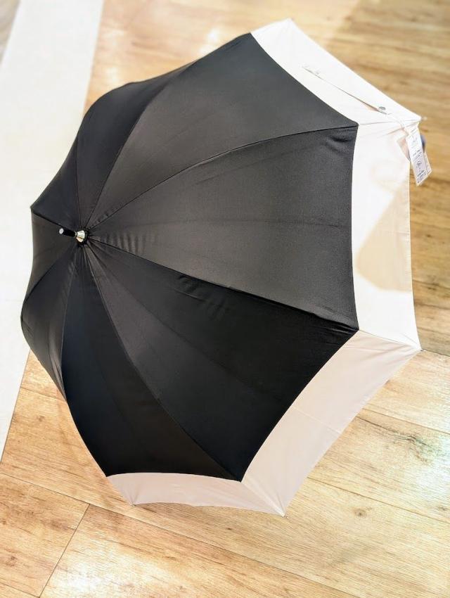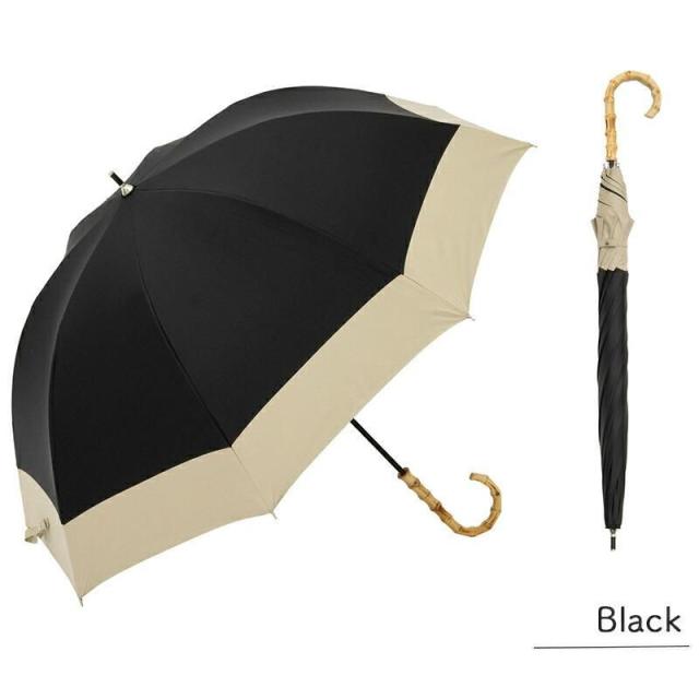because 日傘 晴雨兼用 長傘 PUバイカラー ラージ ブラック バンブーハンドル 紫外線防止加工 紫外線遮蔽率 遮光