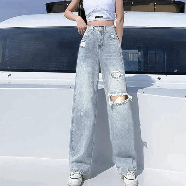 ダメージ デニムパンツ ハイウエスト韓国