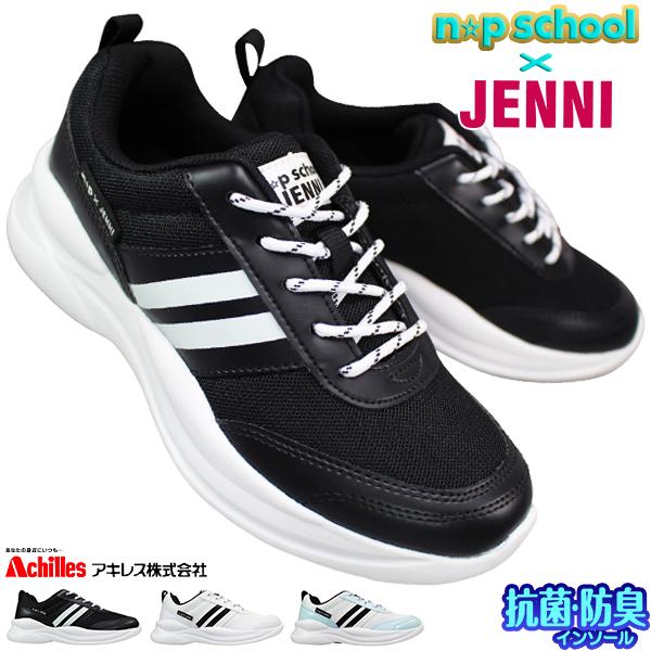 アキレス ニコプチスクール 074 白 黒 サックス 20cm〜23cm キッズ ジュニア 女の子 ローカットスニーカー シューズ 運動靴 紐靴 抗菌防臭 JENNIコラボモデル 2E