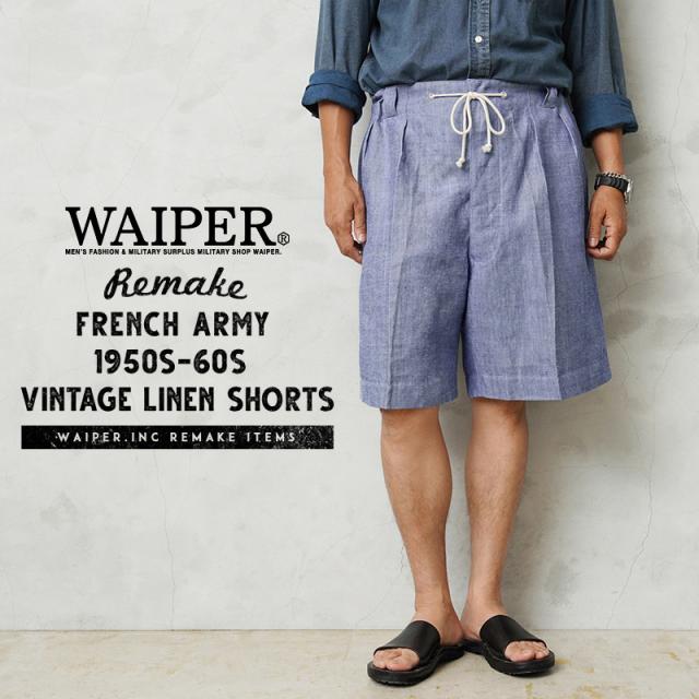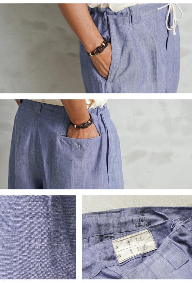 実物 新品 デッドストック フランス軍 1950〜60s ヴィンテージ リメイク リネン ショーツ【Cx】【I】|ショートパンツ ミリタリー メンズファッション ワイドパンツ リネン素材 イージーパンツ 海軍 古着 夏服 ハーフパンツ ボトムス カジュアル