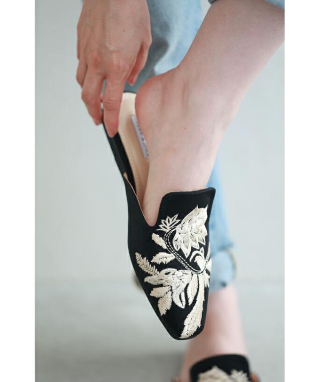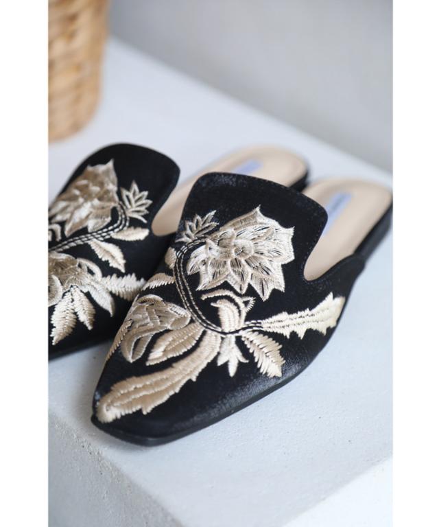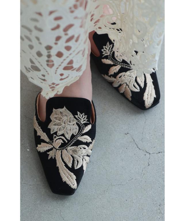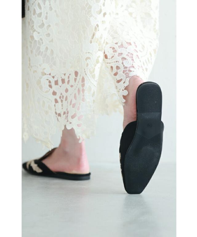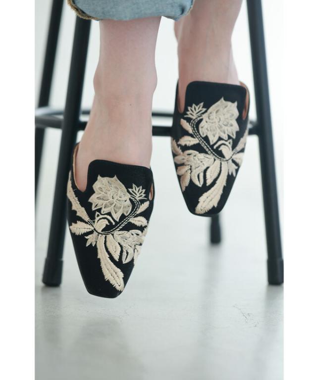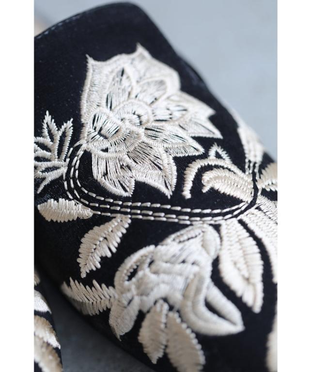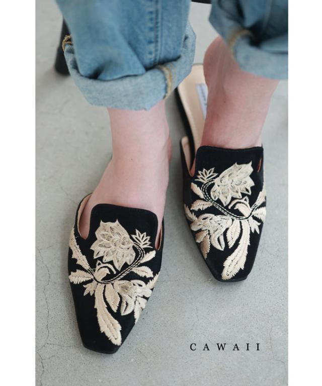 w60863ps 新作 新着 再入荷 CAWAII FRENCHPAVE フレンチパヴェ エレガント ベーシック カジュアル 可愛い かわいい カワイイ おしゃれ オシャレ お洒落 個性 個性的 定番 ベーシック 大人かわいい 大人可愛い 上品 女性らしい デザイン スタンダード ナチュラル きれいめ キレイめ シンプル フェミニン レディース レディースファッション 大人 ママ ミセス 30代 40代 50代 60代 花刺繍 バブーシュ ミュール ぺたんこ 低ヒール 35 36 37 38 39 22.5cm 23.0cm 23.5cm 24.0cm 24.5cm 23cm 24cm スクエア フラット ブラック 黒 黒色 日常使い ヘビロテ おでかけ 春 夏 秋