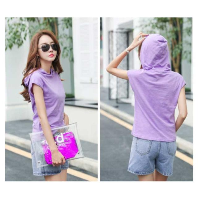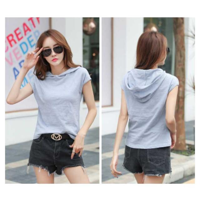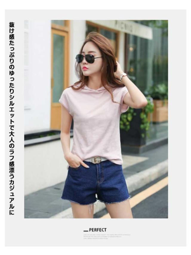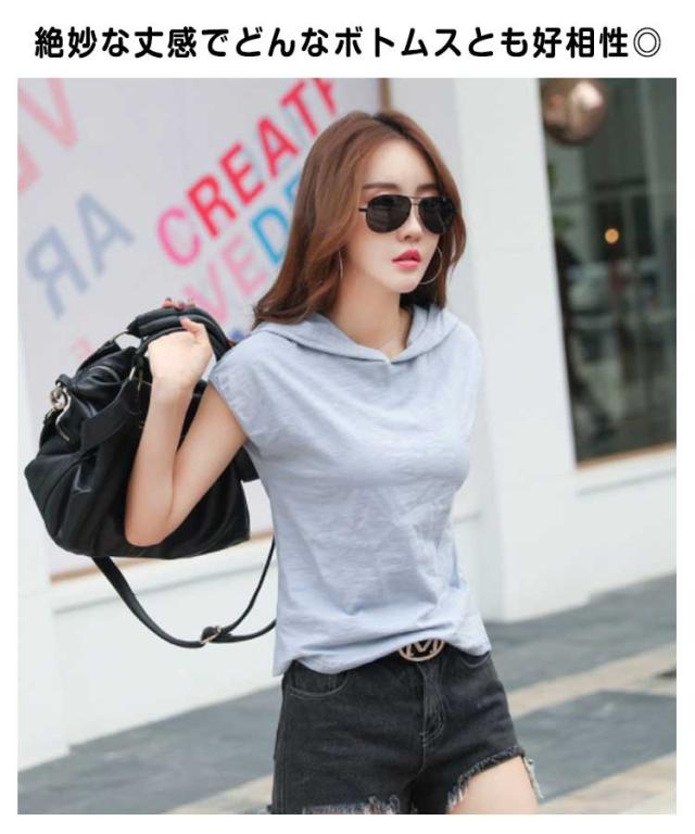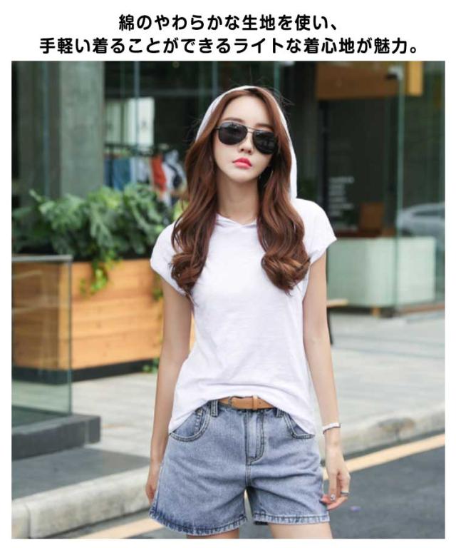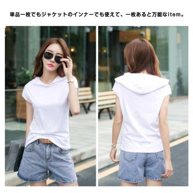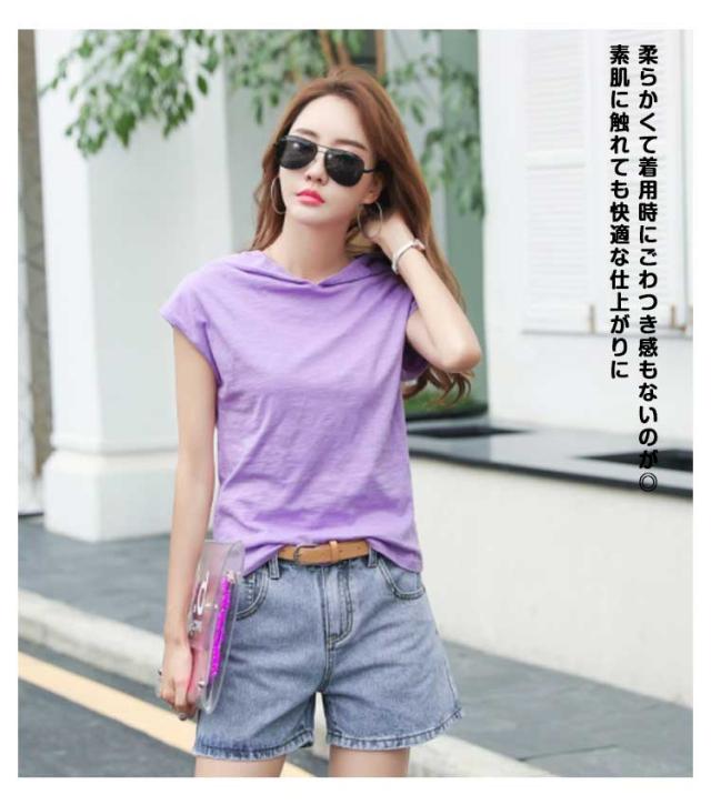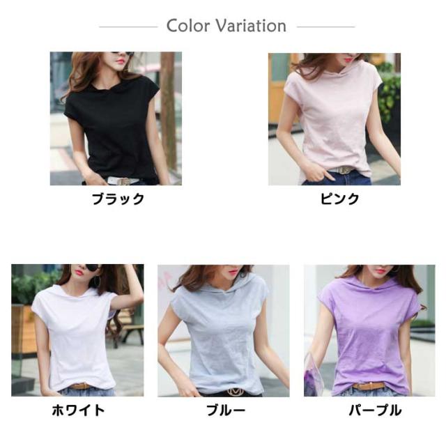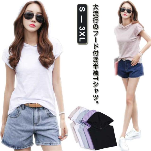 レディース 綿 トップス tシャツ フレンチスリーブ 半袖 プルオーバー フード付き フード付きtシャツ カットソー 無地tシャツ 夏 春服 夏服 シンプル おしゃれ 全5色 スポーツウエア