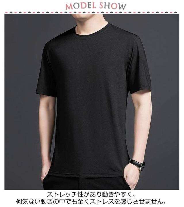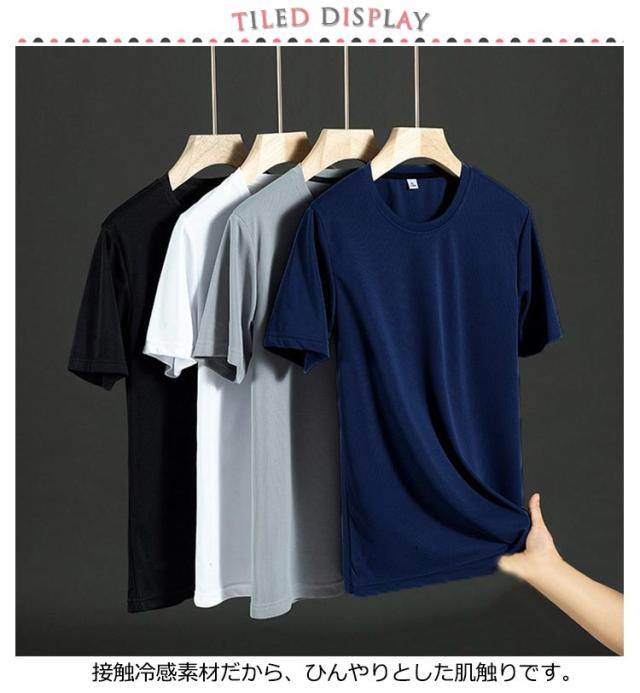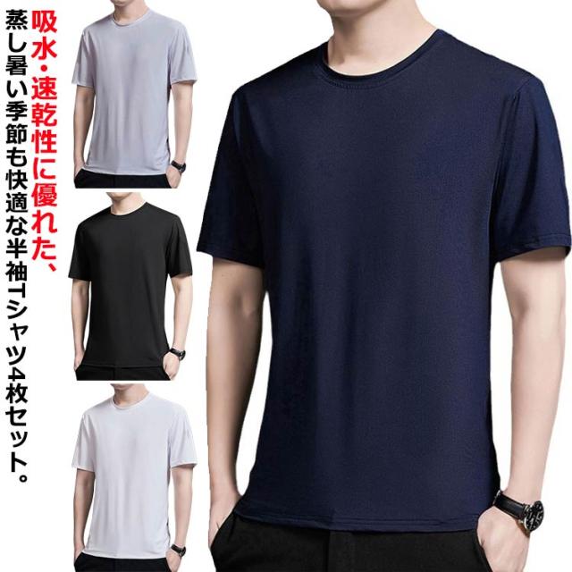 メンズ 夏 tシャツ 抗菌 ストレッチ 半袖 半袖Tシャツ 接触冷感 4枚セット/灰+白+黒+紺 速乾 スポーツウェア 伸縮性 涼しい トップス 防臭 冷たい 半袖tシャツ クルーネック ドライ 吸汗速乾 接触冷感 運動着