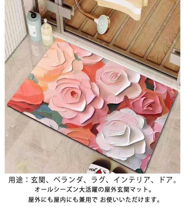 屋外 エントランスマット おしゃれ 40cm*60cm 花柄 泥落とし 玄関マット 北欧 屋外 玄関マット 玄関 マット 速乾 室内 長方形 バスマット 厚手 洗える インテリア エントランス おしゃれ ベランダ キッチン