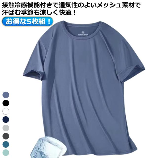 tシャツ 半袖tシャツ メンズ 無地 メンズ Tシャツ メンズ 5枚 速乾tシャツ ドライメッシュ 吸汗速乾 メッシュTシャツ 接触冷感 半袖tシャツ ドライtシャツ 無地 ストレッチ クルーネック スポーツ