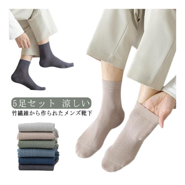 メンズ 涼しい 靴下 竹繊維 5足セット 涼感 靴下 無地 消臭 薄手 クルー丈 ビジネスソックス ソックス 抗菌 防臭 プレゼント 父の日 ギフト 夏用 涼しい
