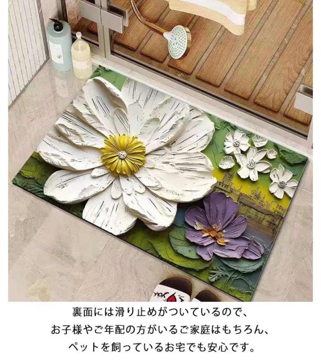 玄関マット 泥落とし 玄関 おしゃれ 花柄 屋外 長方形 バスマット エントランスマット ラグ 北欧 マット 屋外 室内 速乾 玄関マット 厚手 洗える インテリア エントランス おしゃれ ベランダ キッチン