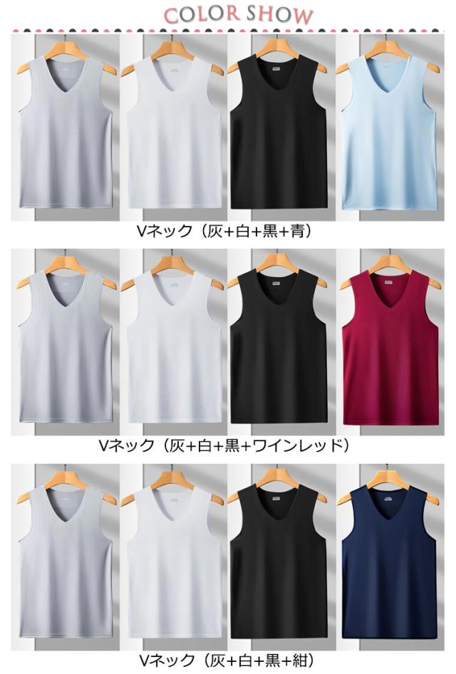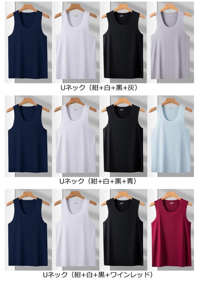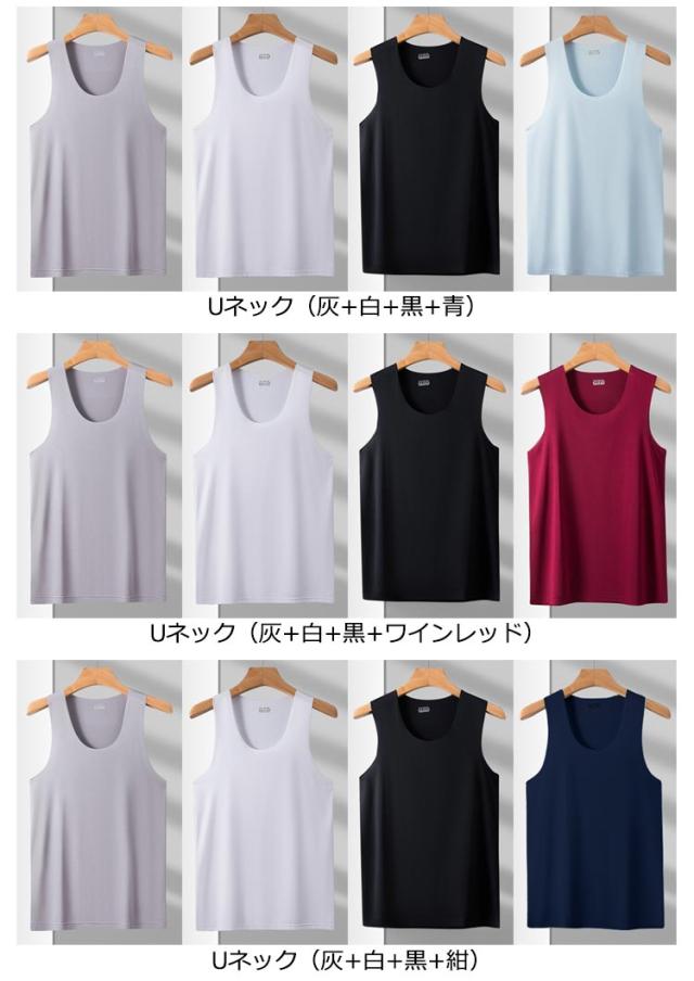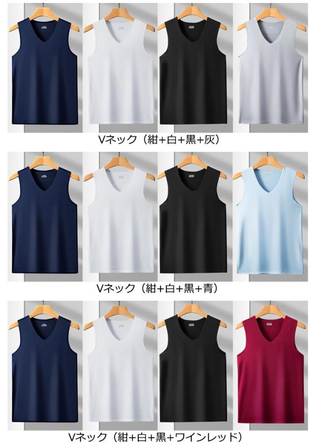 肌着 ストレッチ 4枚セット 薄手 Uネック 送料無料 タンクトップ インナーシャツ タンクトップ ノースリーブ 涼しい シームレス 袖なし トップス 接触冷感 メンズ 4枚セット Vネック ビジネス カジュアル 春 夏 春服 夏服 レイヤード