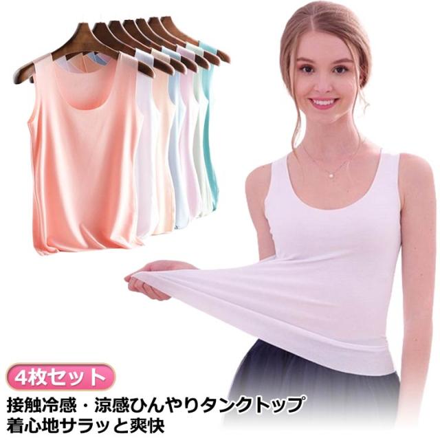 冷感 大きいサイズ 見えない タンクトップ レディース レディース タンクトップ 接触冷感 下着 接触冷感 4枚セット 接触冷感 ひんやり 肌着 レイヤード Uネック インナー キャミソール ブラ紐 全8色 大きいサイズ 吸水速乾
