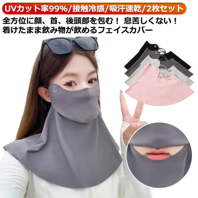 メンズ 夏 uvカット 通気性 耳かけ マジックテープ調節 息苦しくない UPF50+ 農作業 接触冷感 アウトドア スポーツ 洗えるマスク レディース 2枚 登山 フェイスガード 釣り ネックガード ゴルフ テニス ネックカバー 自転車 uv フェイスカバー ピンク 浅い灰 濃い灰