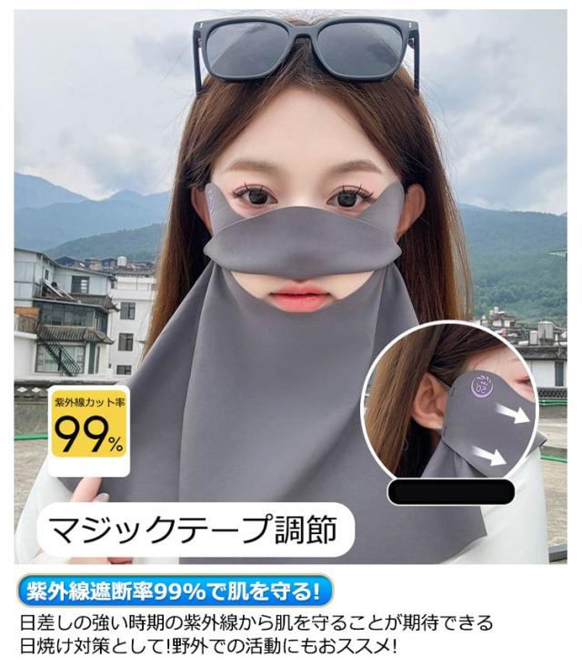 | UVカット率99%/接触冷感/吸汗速乾/2枚セット 全方位に顔、首、後頭部を包む! 息苦しくない!着けたまま飲み物が飲めるフェイスカバー 【触った瞬間ひんやり】接触冷感の材質を採用して、汗をかいたり水に触れたりした時、氷水と洋の満れが熱の作用を気化させ、気化吸熱原理に基づいて。冷却効果があります。 【洗ってもずっとUPF50+】何度でも洗濯して使用できるので、使い捨てマスクより経済的に! 【紫外線遮断率99%で肌を守る!】日差しの強い時期の紫外線から肌を守ることが期待できる日焼け対策として!野外での活動にもおススメ! 【首周り360度!日焼けに死角なし!】お顔と首周りを360度全方位ガード、うなじまですっぽり隠れることで、首もと全体を紫外線からガードします。 【通気性抜群で蒸れない!】口元と鼻の前が開いているので息苦しくありません。ドリンクも飲みやすくマスクを外す必要はありません。 【吸汗速乾】伸縮性、速乾性、吸湿性のある生地は暑い夏でも快適に着用出来ます。汗をかいてもすぐ乾くので長時間の使用でも快適です。 【耳かけタイプ】調節可能な伸縮性のある耳紐付きで長い時間装着していても気になりません。抜群のストレッチ性あり、顔にフットします。 | |