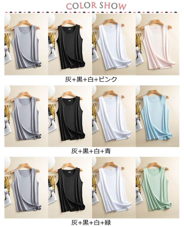 接触冷感 レディース レディース 冷感 接触冷感 タンクトップ タンクトップ 接触冷感 下着 インナー 4枚セット 大きいサイズ ひんやり 肌着 レイヤード Uネック 見えない キャミソール ブラ紐 全8色 大きいサイズ 吸水速乾