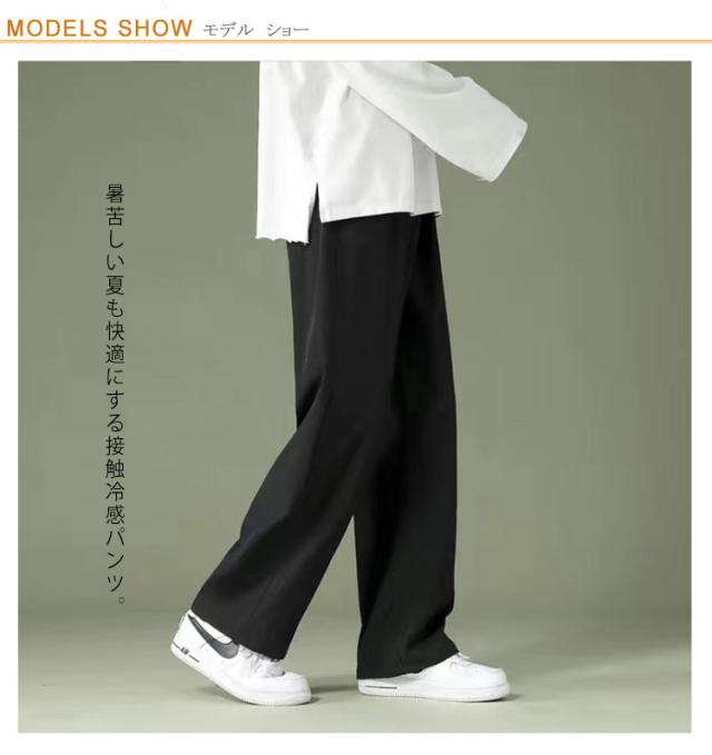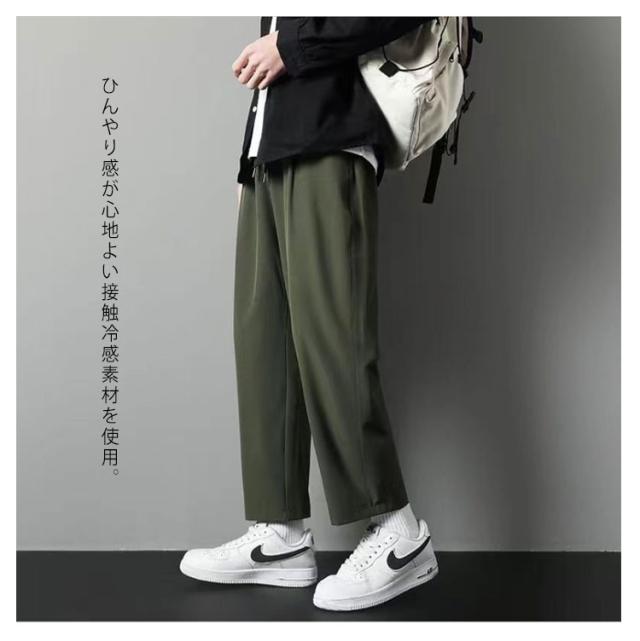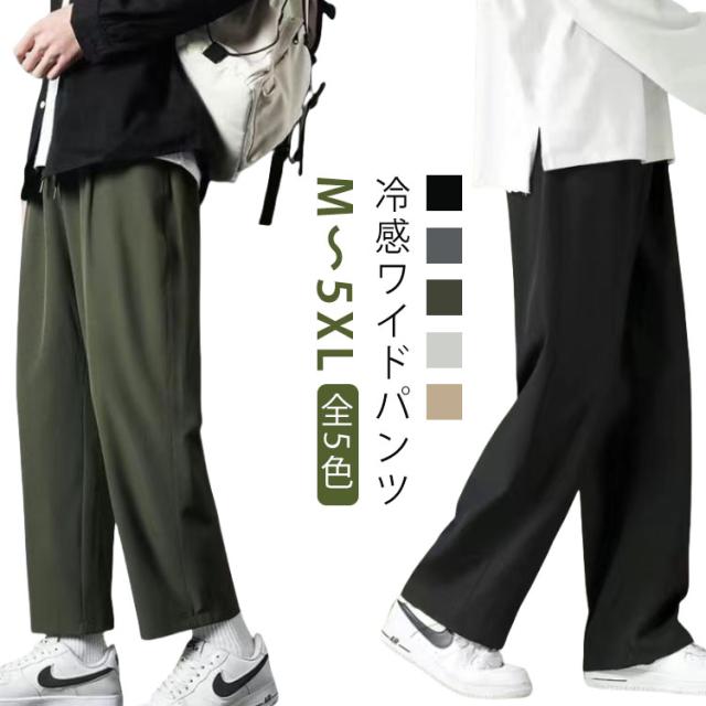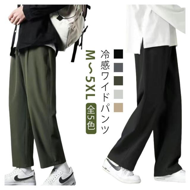 ワイドパンツ メンズ 夏 ゆったり アイスシルク 学生 冷感 パンツ 涼しい 9分丈 無地 ジュニア 通学 カジュアル 通勤 接触冷感 ストレートパンツ ウエストゴム イージーパンツ ワイドパンツ 韓国ファッション