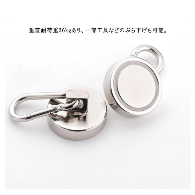 超強力 直径32mm 超強力 8個入り ネオジム磁石 耐荷重約36kg フック カラビナ カラビナ付磁石 コンパクトサイズ 倉庫 お風呂 浴室 オフィス 収納 ラック キッチン収納 玄関