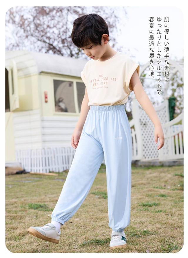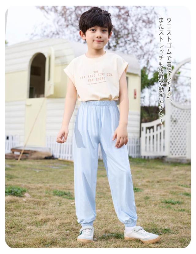 長ズボン 男の子 接触冷感 キッズ パンツ 夏用 涼しい ロングパンツ UVカット 女の子 シンプル 爽やか 薄手 接触冷感 虫よけ ボーイズ 無地 春夏 ボトムス ガールズ ジュニア こども ストレッチ 110 120 130 140 150