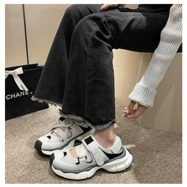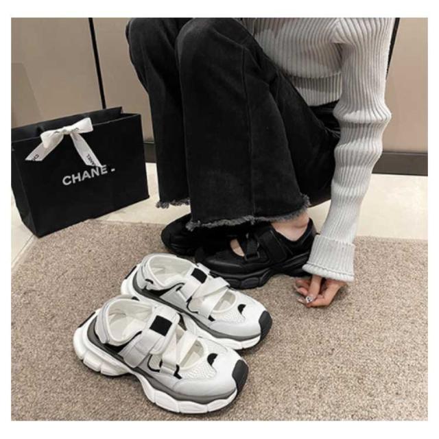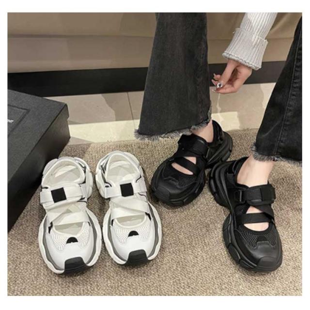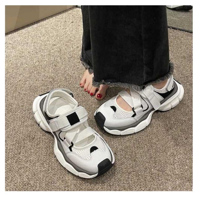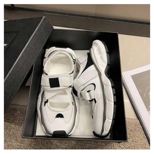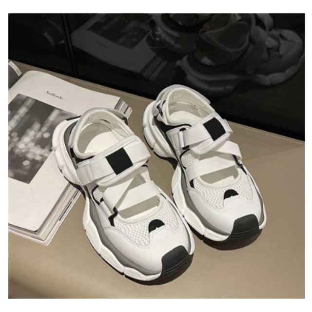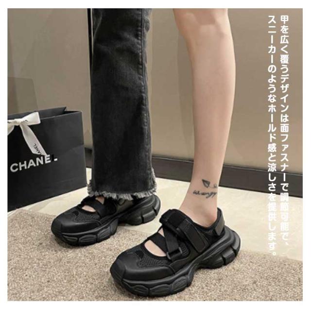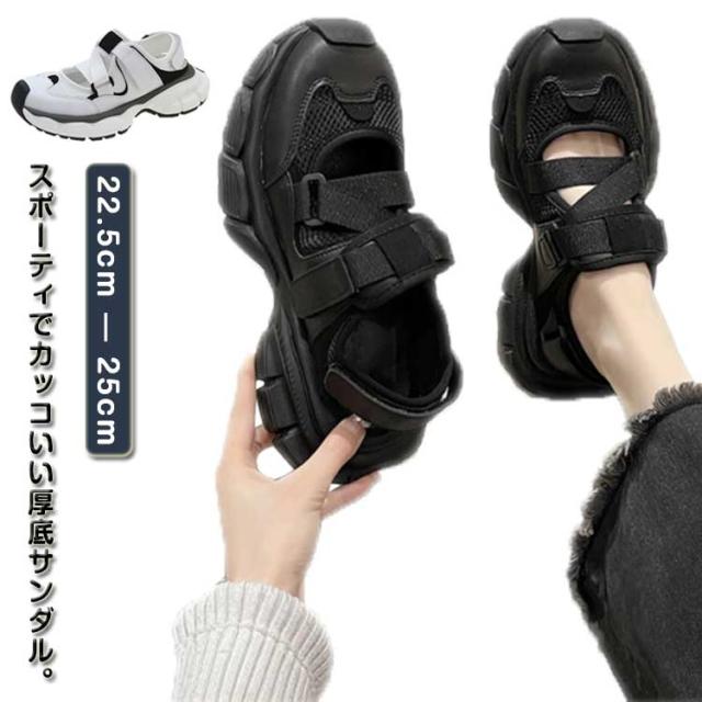 調節可能 レディース スポサン 歩きやすい 黒 スニーカーサンダル ダッド 厚底 合皮 スポーツサンダル 軽量 PUレザー かわいい 靴 おしゃれ スポーツサンダル 履きやすい 疲れない 白 シューズ 靴 カジュアル スポーティー