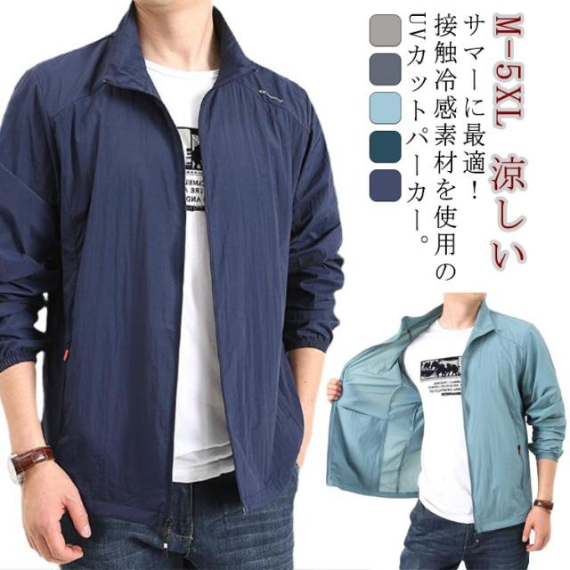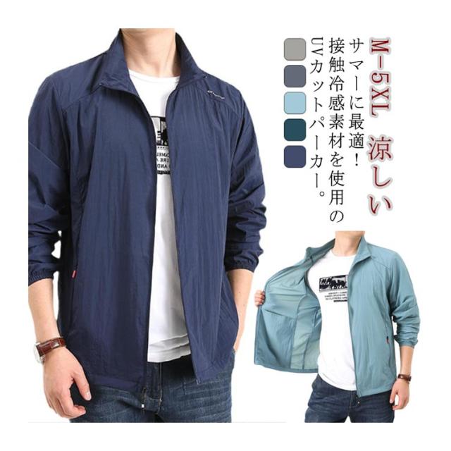 冷感 涼しい ジャケット 速乾 uvカット 長袖 メンズ 接触冷感 日焼け防止 薄手 ひんやり フードなし スポーツ用 立ち襟 UVパーカー 紫外線対策 UVパーカー ジャンパー 通気性 春 夏 大きいサイズ カジュアル アウトドア ラッシュパーカー