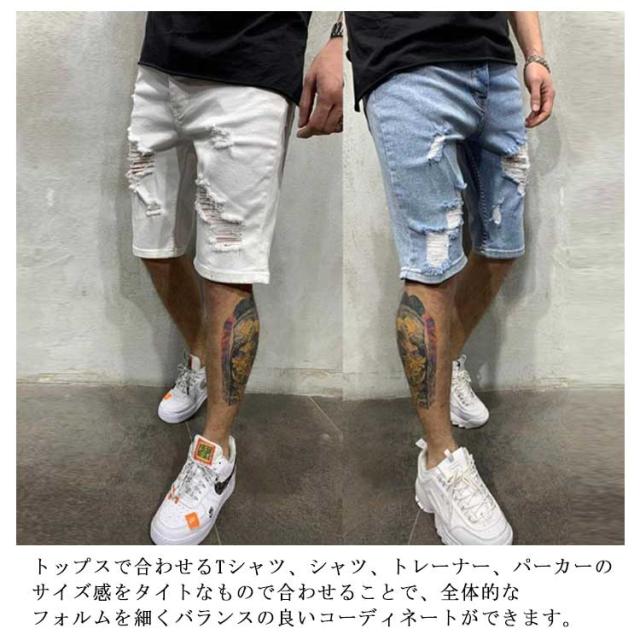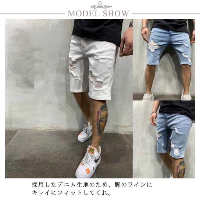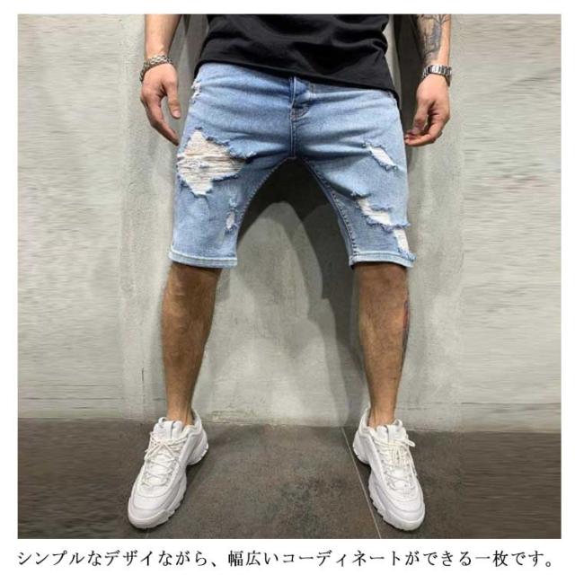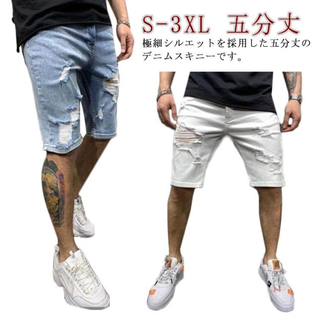 メンズ 半ズボン スキニー スリム 夏 ショートパンツ 五分丈 ダメージ S ハーフパンツ ショーツ ダメージデニムパンツ ジーンズ ハーパン カジュアル おしゃれ デニムパンツ M L XL 2XL