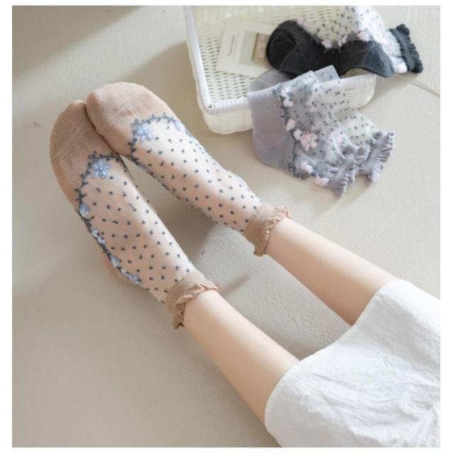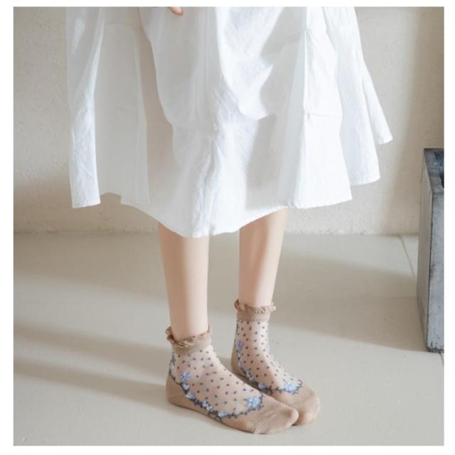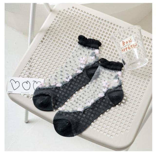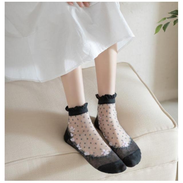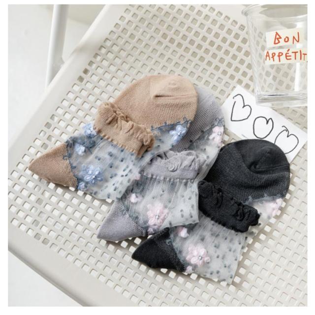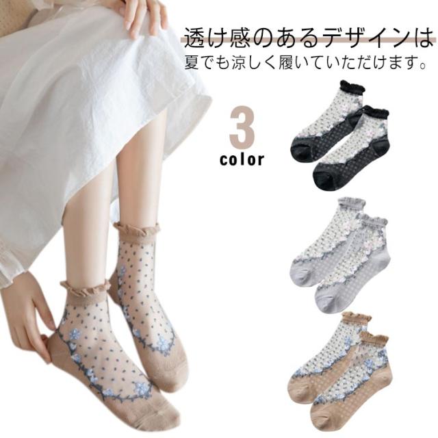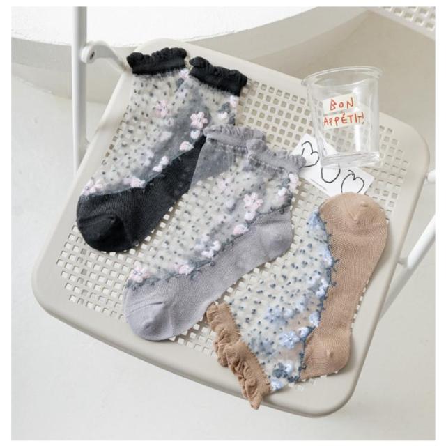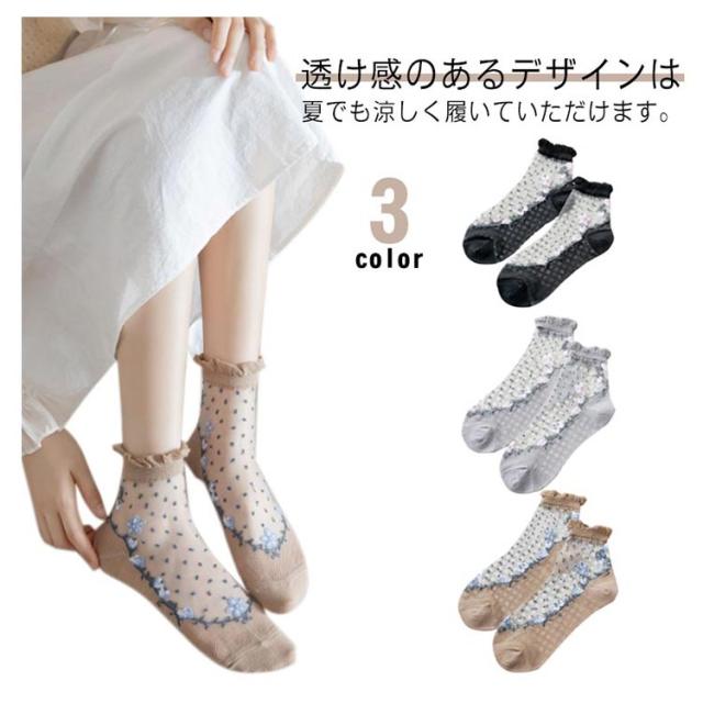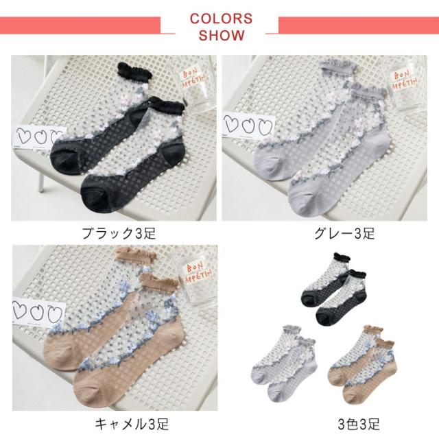 チュールソックス 夏用 シアーソックス 女性用 シアー靴下 レース 3足セット!ひんやりサラサラ シースルー靴下 チュールレース サンダル 靴下 レディース おしゃれ 3足セット!ひんやりサラサラ 冷感 薄手 花柄