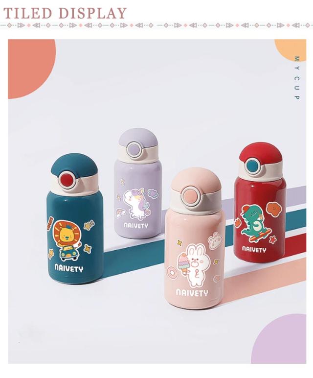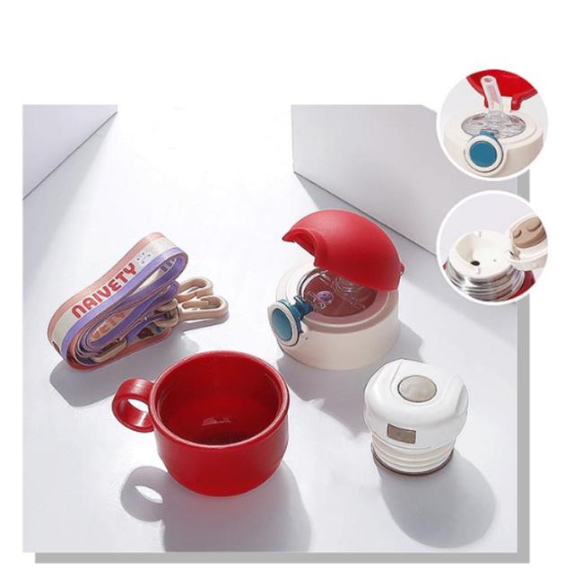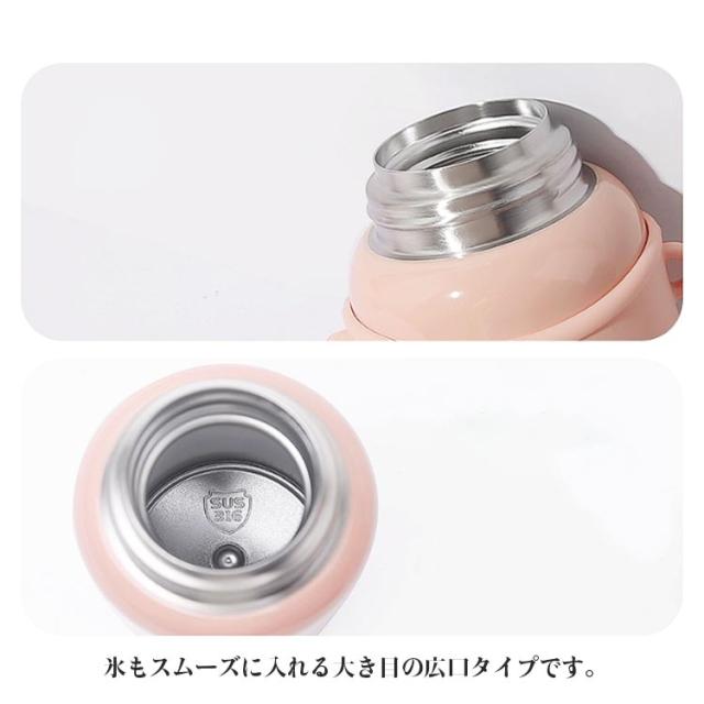 | ストロー飲み&コップ飲み2way! シリコンカバー付きキッズステンレス水筒。 真空断熱ステンレスボトルで、保冷・保温にに優れており、最適な温度を長時間保つことができます。外側に熱が伝わりにくい、冷たい飲みものを入れても結露しにくく、手やテーブルなどが濡れる心配はありません。 氷もスムーズに入れる大き目の広口タイプです。 お子様の成長に合わせてコップ飲みとストロー飲みの2種類の使い方ができます。 温感シリコンパットで、やけどすることなく安心。(温感パットがパープルになった場合は、50℃以下、透明の場合は50℃以上です。) お出掛けに便利な長さが調節できるショルダーベルトが付いています。 軽量・コンパクトなのでお子様でも持ち運びしやすい。 | |