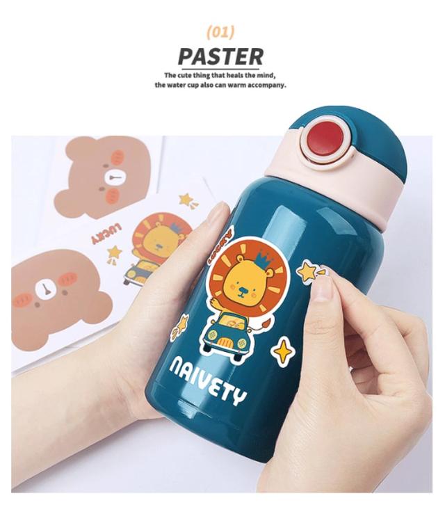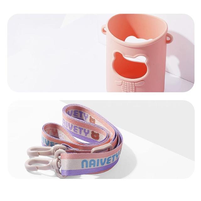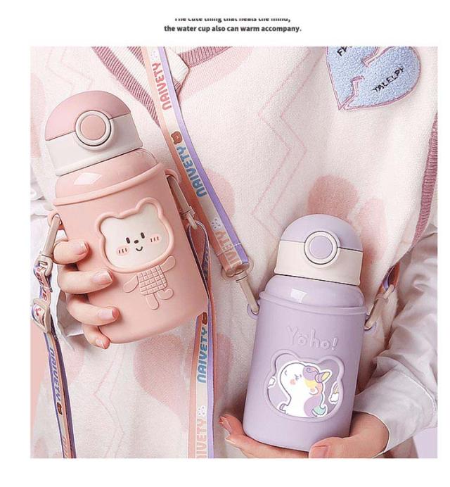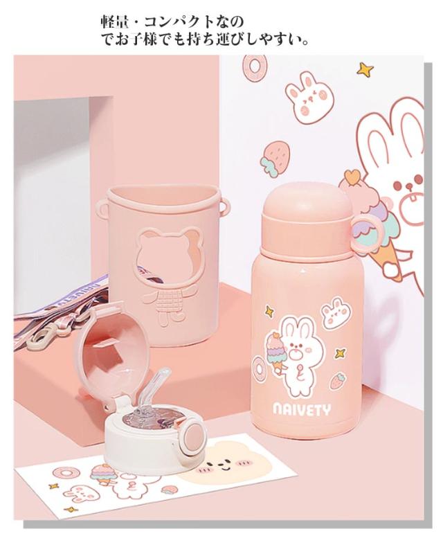 斜めがけストラップ付き ボトル ストロー飲み 2WAY キッズ シリコンカバー付き 子供 保冷 保温 女の子 水筒 コップ飲み キッズ 男の子 子ども 幼稚園 小学生 真空断熱 魔法瓶 キッズボトル 漏れない ステンレスボトル DIYシールおまけ