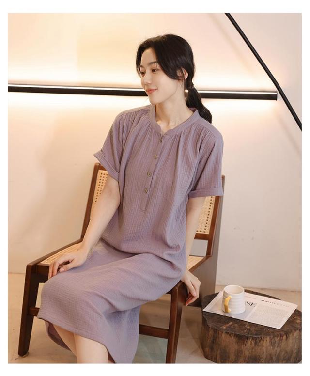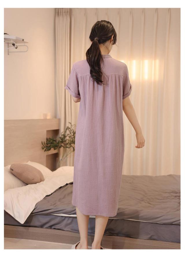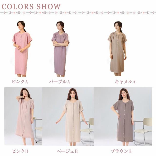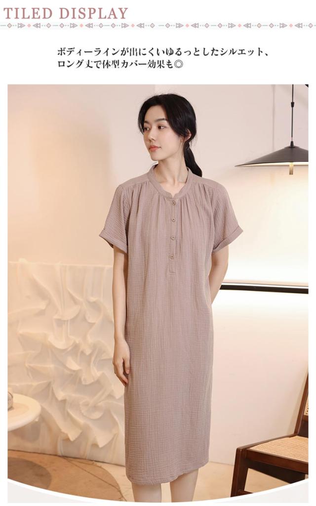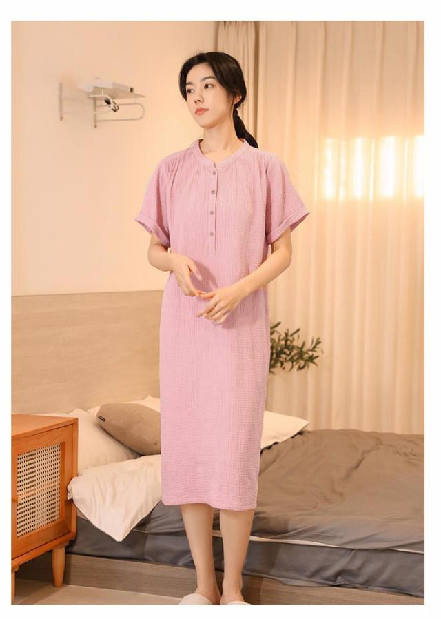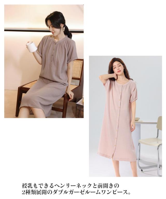 ネグリジェ 前開き パジャマ ワンピース ダブルガーゼ 楊柳ガーゼワンピース 半袖 ルームワンピース 綿 コットン 春 夏 部屋着 パジャマ ワンピース ふんわりガーゼ 2重ガーゼ 無地 ラウンドネック レディース 授乳 送料無料