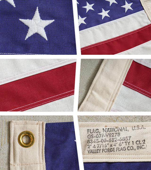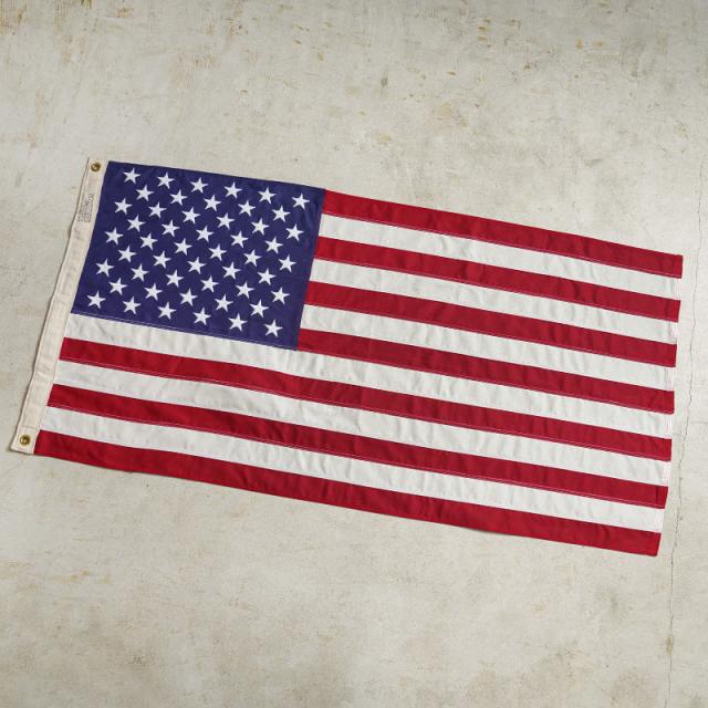 実物 新品 デッドストック 米軍 G-SPEC USA FLAG アメリカ国旗 のご紹介です。アメリカで高品質の米国旗を製造しているVALLEY FORGE社製のMade In U.S.A.のアメリカ国旗です。VALLEY FORGE社は退役軍人省の埋葬旗の最大の供給業者であり、ケネディ大統領をはじめ、歴代のアメリカ大統領の棺にもかけられ、彼らの奉仕とリーダーシップを称えてきました。アメリカ国家の誇りを表す星条旗は、独立記念日、戦没将兵追悼記念日、選挙日、軍人の退役の日などに使用されおります。生地には耐久性に優れたコットンを使用。アメリカらしい無骨な風合いで本物志向の方にオススメです。インテリアとしてお部屋やガレージなどに飾って雰囲気も楽しめます。