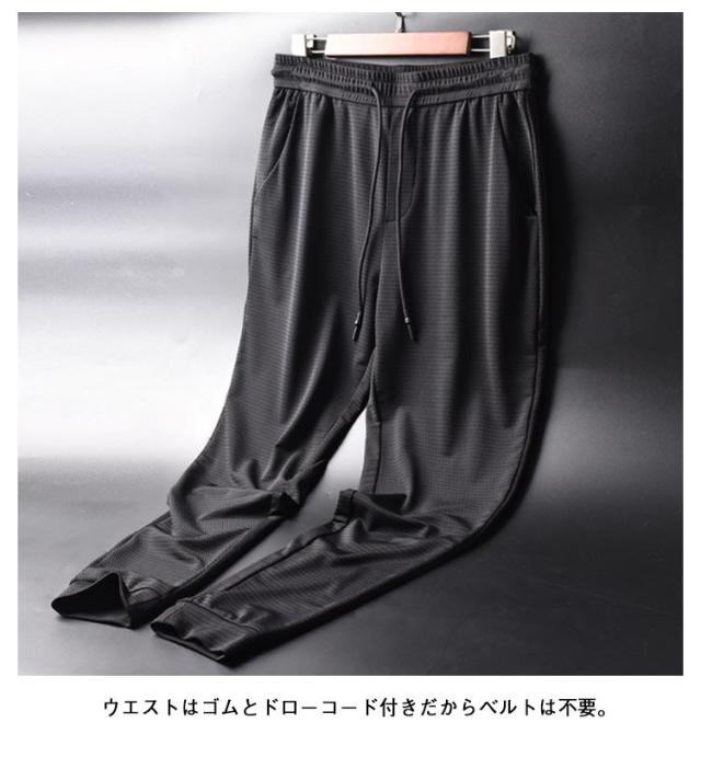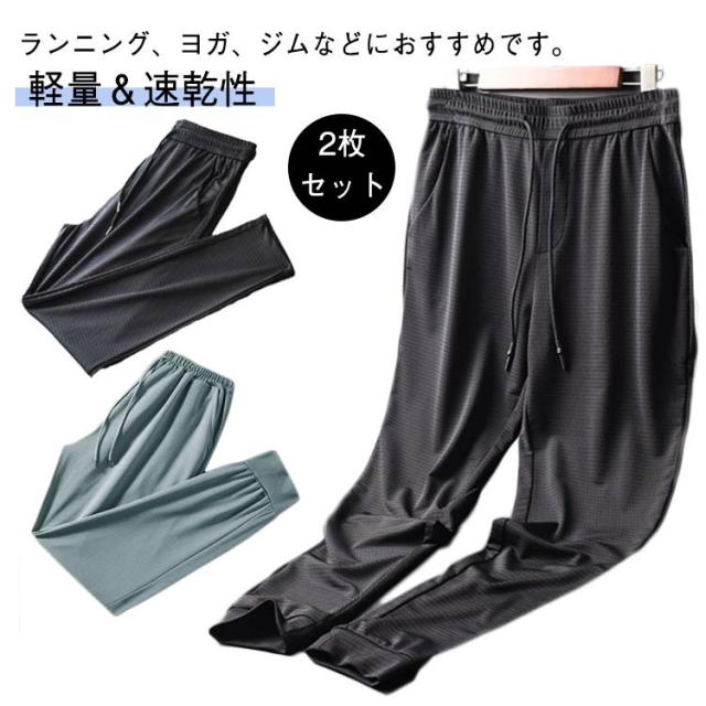 メッシュ素材 パンツ 冷感パンツ メンズ サマーパンツ 接触冷感 アイスシルクパンツ 2枚セット ひんやり 涼しい 夏 ストレッチ ジョガーパンツ スポーツパンツ 吸水速乾 伸縮 裾絞り スウェットパンツ 長ズボン ワークパンツ 運動 イージーパンツ