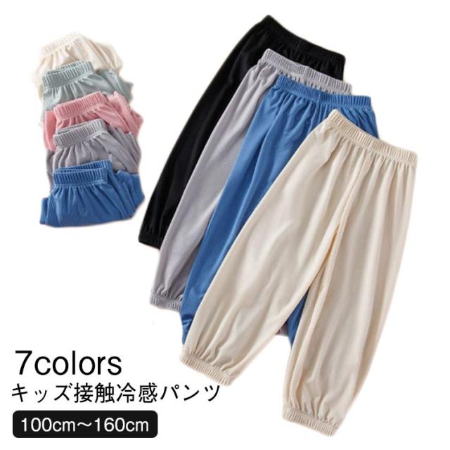 | 7colors 100cm〜160cm キッズ接触冷感パンツ 薄手素材で春や夏にピッタリ 高伸縮性アイスシルク生地使用 ゆったり着用で、窮屈感がなくお子様に負担をかけず、動きやすい。 無地デザインなので、着こなしがしやすく着回せます。 裾にもゴム入りで、虫取り、キャンプなどお出かけの時、虫刺され防止効果にも◎ | |