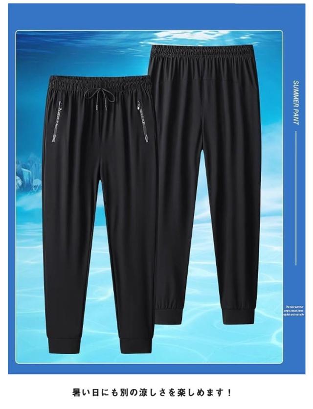2点セット アイス シルク ズボン メンズ パンツ 男性用 サマーパンツ アイスシルクパンツ 接触冷感 ロングパンツ スポーツパンツ 無地 速乾 軽量 トレーニングパンツ 薄手 通気 ストレッチパンツ 涼しい 夏 春 秋 長ズボン ワークパンツ 無地 カジュアル 送料無料